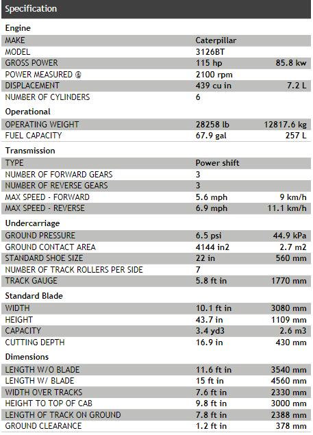 CAT D5N XL Bulldozer Specification